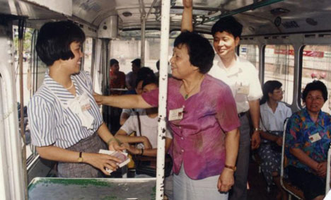 早在改革開放初期,廣州交通行業(yè)便提出了“友愛在車廂”的文明服務(wù)理念,以解決公交“乘車難”“乘車擁擠”的社會(huì)問題。1986年,廣州市一汽巴士有限公司(原廣州市第一公共汽車公司)開全國之先河,組織5路線的三個(gè)標(biāo)兵車組與沿線12個(gè)單位聯(lián)合發(fā)起“友愛在車廂”活動(dòng),以構(gòu)建文明車廂為初心,充分利用公交車這一流動(dòng)的服務(wù)窗口,教育和引導(dǎo)公交員工扶老攜幼、真誠服務(wù),并號(hào)召八方乘客相互禮讓、相互幫助,讓文明友愛精神內(nèi)化為城市底色,根植于每個(gè)人心底,流露在日常之間。