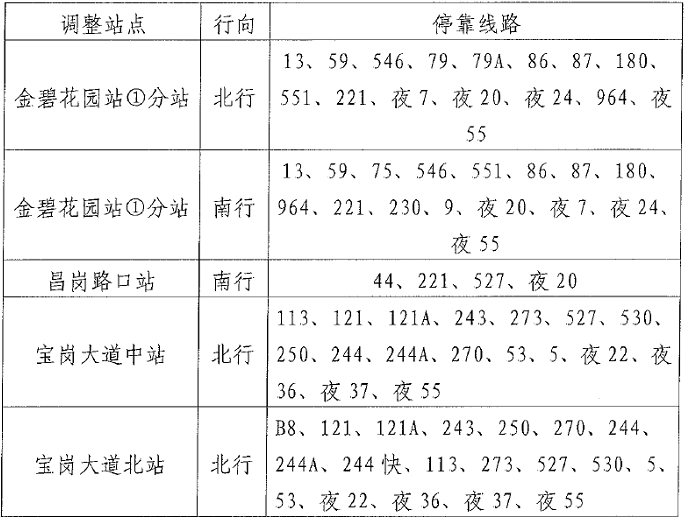 上述調(diào)整實(shí)施時(shí)間為10月23日,請(qǐng)候車乘客注意站點(diǎn)的變更。