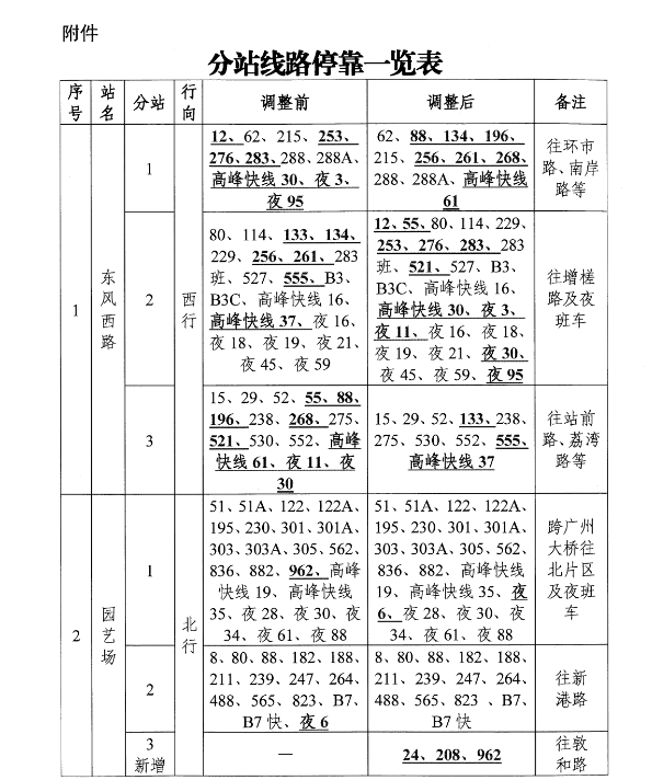 (一)調(diào)整公共汽車(chē)東風(fēng)西路站(西行)各分站??烤€路,涉及我司12路、55路、133路、高峰快線37路、夜11路線。